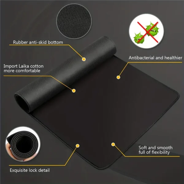 Mejora tu experiencia de juego y trabajo con esta alfombrilla de ratón de gran tamaño, diseñada para ofrecer comodidad, precisión y un espacio amplio para todos tus accesorios. Su superficie suave garantiza un deslizamiento fluido del mouse, mientras que la base de goma antideslizante mantiene todo en su lugar, incluso en los momentos más intensos.