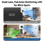 El sistema de detección inteligente es uno de los puntos fuertes de esta cámara, destacando especialmente su capacidad de detectar movimiento humano mediante un sensor PIR. Junto a su doble cámara giratoria, la Cámara Dual 360° WiFi Tuya permite cambiar el ángulo y enfoque según tus necesidades, asegurando una visión clara y precisa, incluso en espacios amplios.