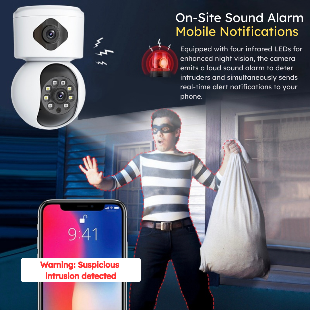 La Cámara Dual 360° WiFi Tuya está diseñada para brindar tranquilidad, ofreciendo supervisión constante en cada ángulo. Gracias a sus dos lentes, esta cámara garantiza una cobertura visual completa y elimina cualquier punto ciego. Ideal para hogares, oficinas, guarderías o cualquier lugar que necesite monitoreo total, esta solución combina tecnología avanzada con una interfaz fácil de usar a través de la plataforma automatizada Tuya.