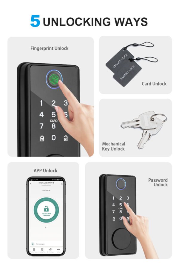 La Cerradura Inteligente J41 es la respuesta innovadora para quienes buscan proteger su hogar, oficina o espacio comercial sin comprometer el diseño ni la funcionalidad. Con tecnología de última generación y materiales de alta calidad, esta cerradura combina seguridad y comodidad, adaptándose perfectamente a tus necesidades cotidianas. Gracias a su conectividad Wi-Fi 2.4GHz y su integración directa con la app Tuya Smart, podrás disfrutar de un control total desde tu smartphone, sin complicaciones.