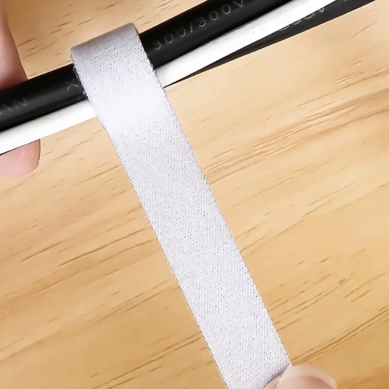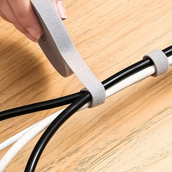 Mantén tus cables organizados con esta cinta de sujeción adhesiva tipo gancho y bucle, perfecta para ordenar escritorios, accesorios electrónicos y espacios de trabajo. Reutilizable, resistente y fácil de cortar según tus necesidades.