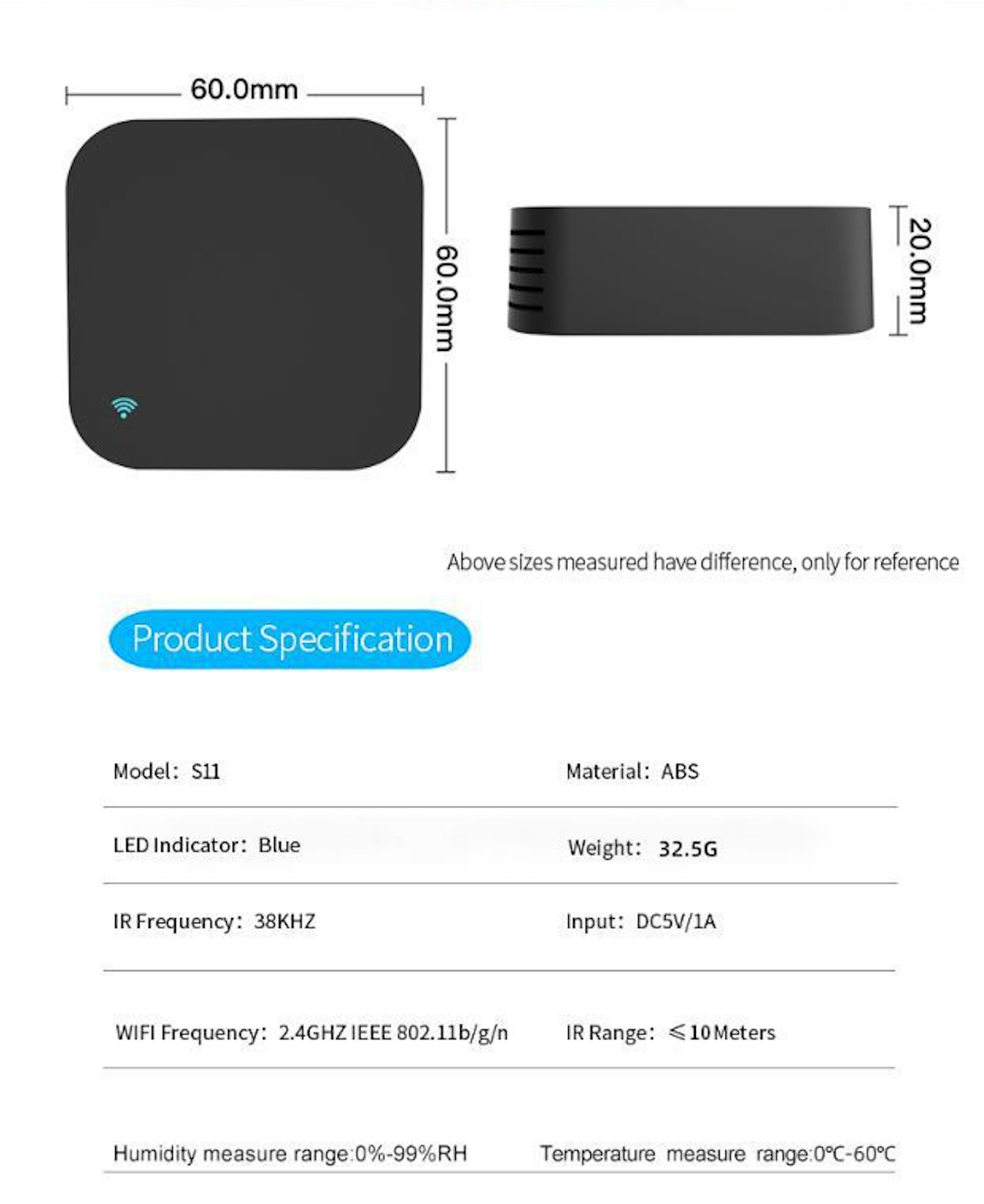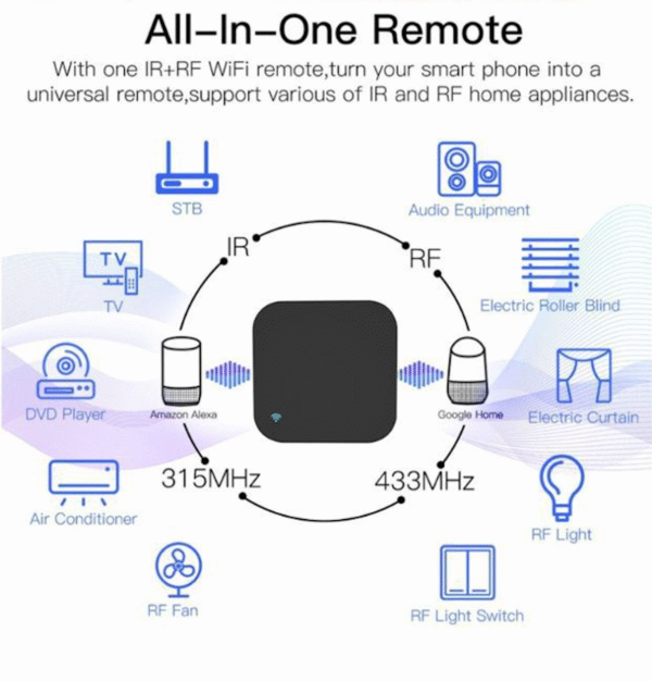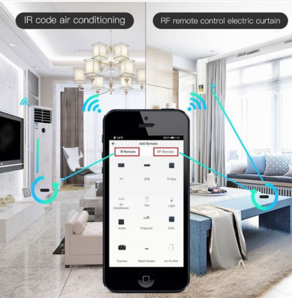 Di adiós a la confusión de manejar diferentes controles y dispositivos. Con el Control IR RF Tuya, puedes consolidar el funcionamiento de portones, shutters, y otros equipos en un único y práctico mando a distancia. Gracias a su tecnología IR y RF (315/433 MHz), cubrirá una distancia de hasta ≤ 8 metros para que tengas el control total sin esfuerzo.