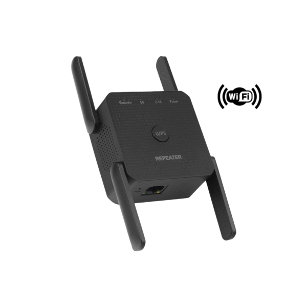 Descubre el Repetidor WiFi 2.4/5GHz, el dispositivo ideal para garantizar una conexión rápida y estable en tu hogar, oficina o negocio. Diseñado para mejorar la cobertura de tu red inalámbrica, este repetidor dual band te permitirá disfrutar de velocidades de hasta 1200 Mbps, optimizadas para actividades de gran demanda como el streaming, videollamadas de alta calidad, y el uso de dispositivos inteligentes.