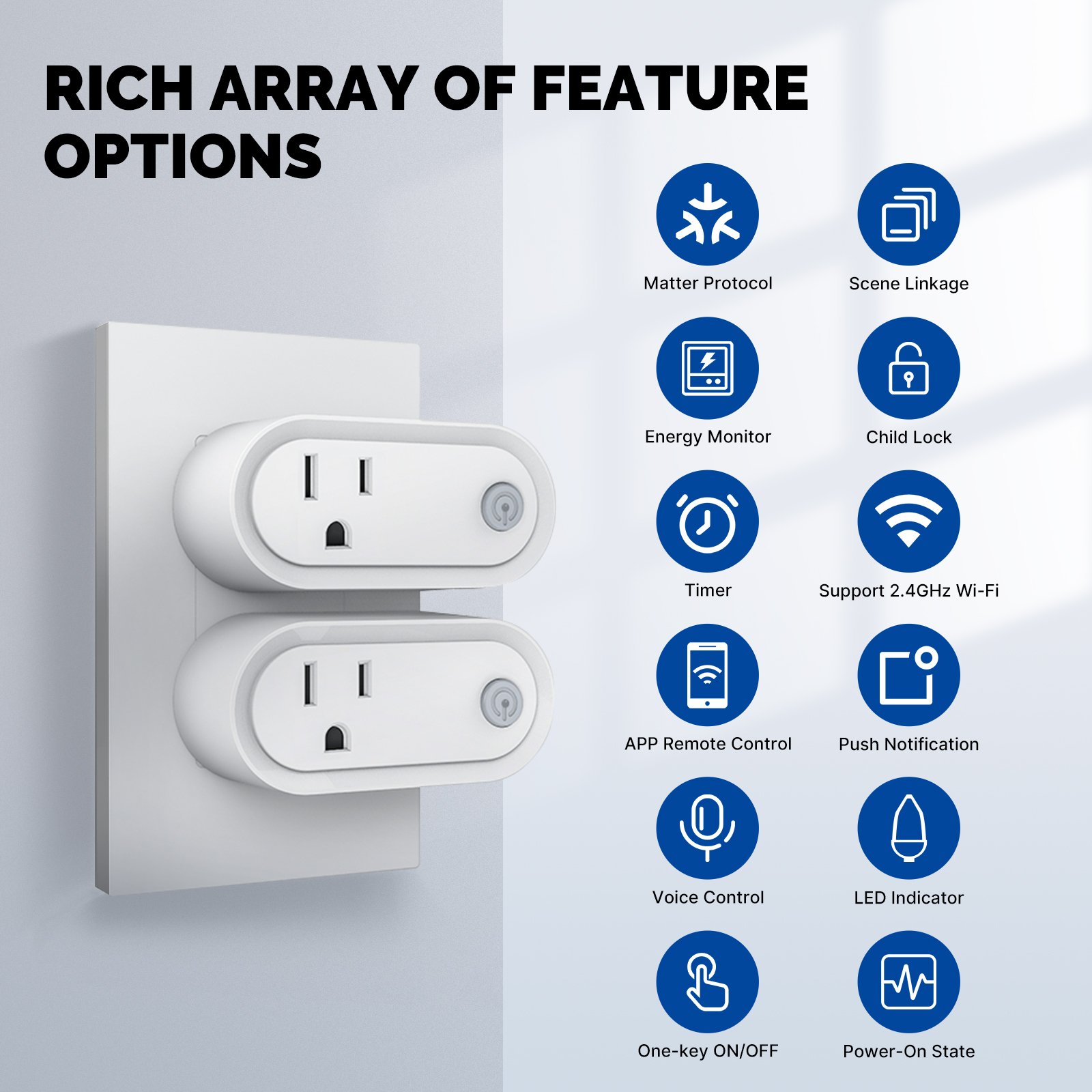 El Enchufe Inteligente Matter se destaca por integrar el avanzado protocolo Matter, lo que garantiza una interoperabilidad segura y eficiente entre diferentes marcas y plataformas de hogar inteligente. Ya no tendrás que preocuparte por la compatibilidad con otros dispositivos; este enchufe se adapta perfectamente a tu ecosistema tecnológico, ofreciéndote una experiencia fluida y sin complicaciones en tu red doméstica.