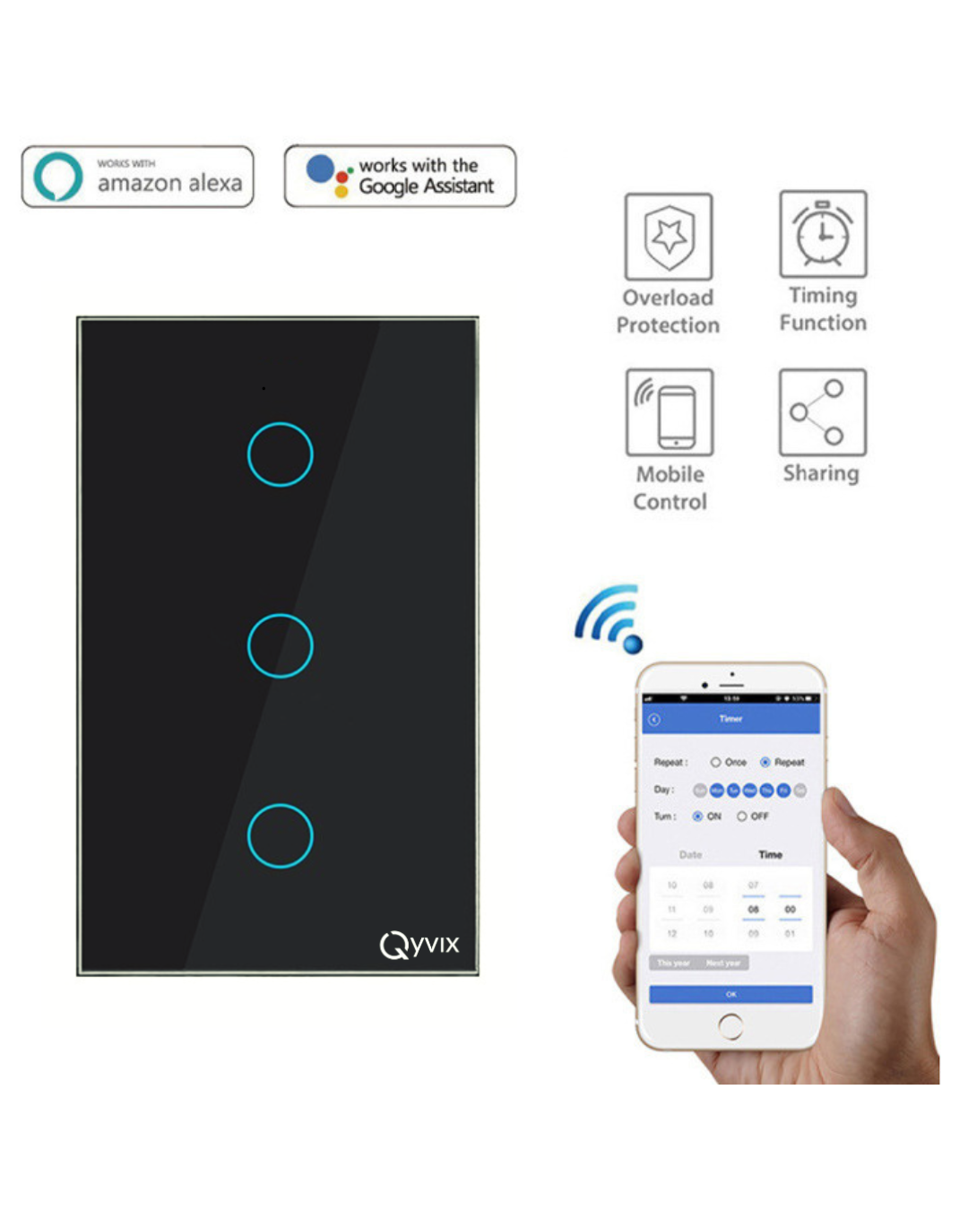 El interruptor táctil inteligente WiFi de Qyvix es más que un simple accesorio; es el futuro de la gestión del hogar. Simplifica tu vida, optimiza tu consumo energético y mejora la estética de tu espacio con esta tecnología de última generación.