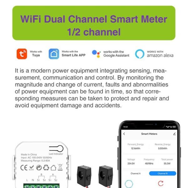 Descubre una solución avanzada para la gestión eficiente de tu consumo eléctrico con este dispositivo diseñado para monitorear tus dos líneas (fases) en tiempo real. Ideal tanto para hogares como para negocios, este monitor eléctrico bifásico proporciona datos precisos y detallados directamente en tu celular, permitiéndote tomar el control de tu consumo energético de manera sencilla y accesible.