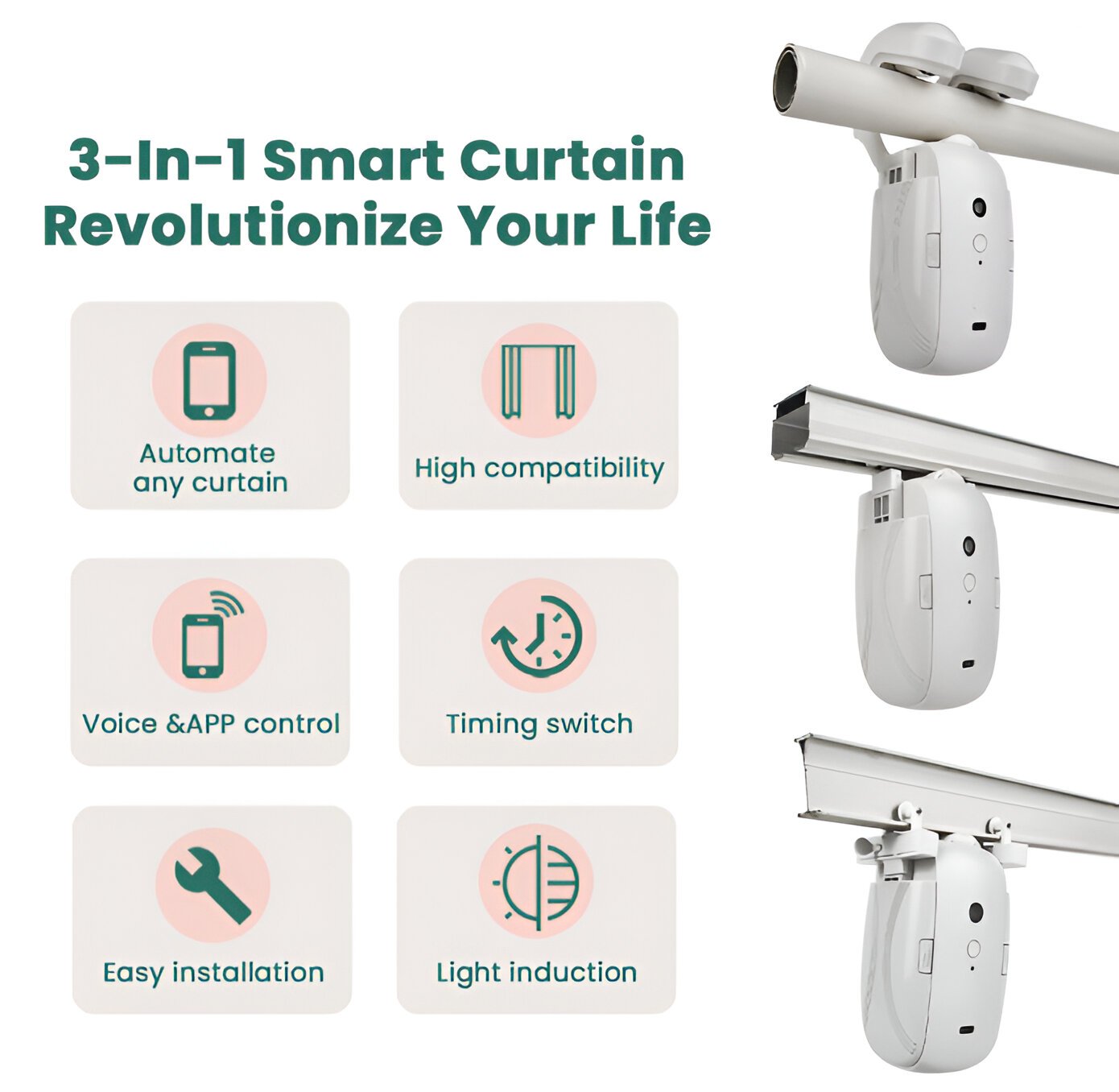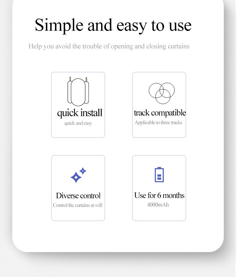 El Motor de Cortina 3 en 1 destaca por permitirte gestionar tus cortinas de manera sencilla a través de una aplicación móvil intuitiva. Con solo unos toques en tu smartphone, puedes abrir, cerrar o ajustar tus cortinas según tus preferencias. Este nivel de automatización te permite integrar la tecnología en tu vida diaria, creando un entorno más cómodo y eficiente.