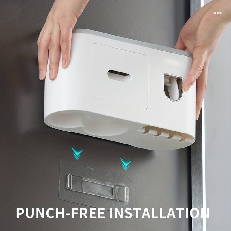 El dispensador automático exprime la cantidad justa de pasta, mientras que los compartimentos permiten almacenar cepillos, pasta, accesorios y más. Ideal para baños familiares, apartamentos y espacios pequeños que necesitan orden y funcionalidad.