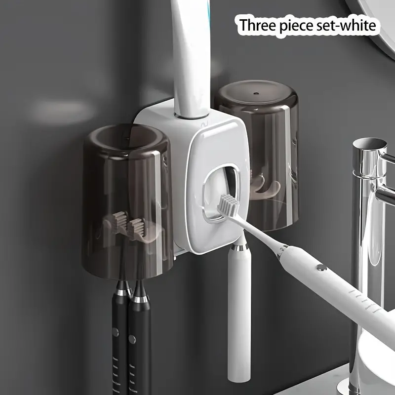 El esterilizador ayuda a mantener los cepillos más higiénicos, mientras que el dispensador automático facilita la cantidad justa de pasta en cada uso. Fabricado en material plástico resistente y fácil de limpiar, ideal para cualquier tipo de baño.